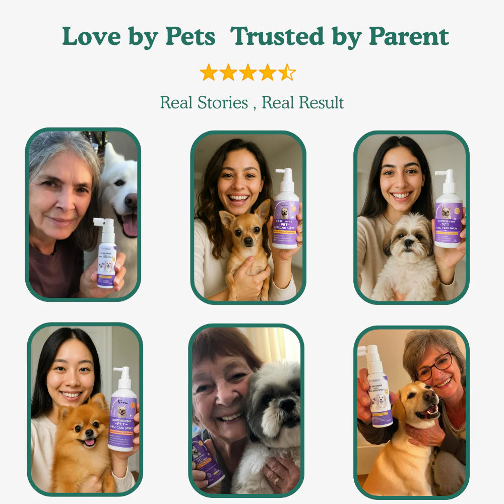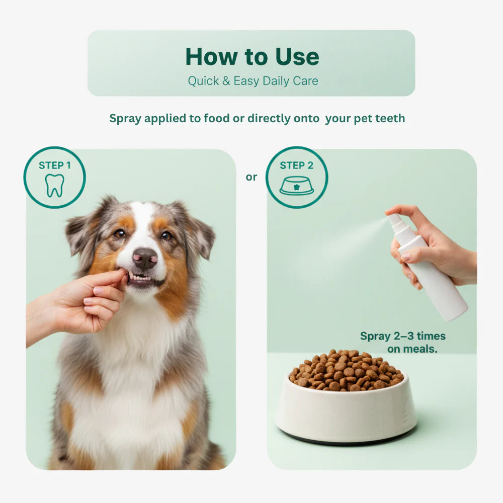 Tired of your dog’s bad breath, plaque, or gum issues but they hate brushing? This stress-free spray makes caring for your pup’s teeth simple and effective. Just spray to fight bacteria, freshen breath instantly, and support strong, healthy teeth and gums—no brushing, no struggle.